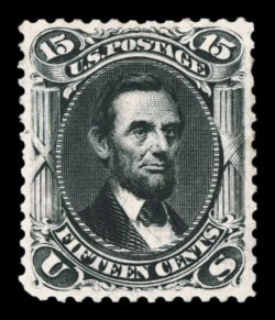 117 og 108 image#108, 15c Black re-issue, a most impressive mint example of this especially difficult value, possessing extraordinary centering within large margins, intensely rich color and an excellent clarity of impression on bright paper, full o.g., extremely fine; among the finest known Fifteen Cent Re-issues, of which only 397 were sold; 2006 PF certificate. (Image) $5,500.00