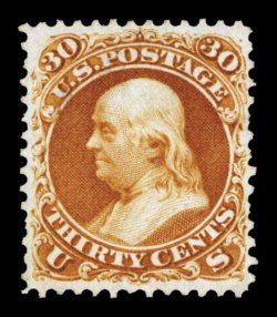 120 ng 110 image#110, 30c Brownish orange re-issue, unused, strong rich color and a clean impression on fresh paper, well centered, small filled thin and some perforation irregularities as is often the case on these re-issues, very fine appearance; only 346 sold. (Image) $4,000.00