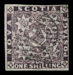 1306 O 6 image#6, 1857 1/- Reddish purple, premium used example of this scarce high value, unusually strong fresh color and a crisp detailed impression, well clear to large margins all around, particularly light and unobtrusive grid cancel, extremely fine; rarely encountered in this select quality; signed by G. Gilbert and accompanied by his 1942 certificate, plus 2006 Greene Foundation certificate (Unitrade $7,000.00). (Image) $4,500.00