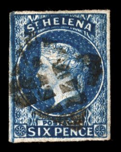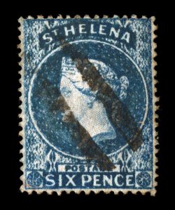 1311 O 2 image#2, 1861 6p Blue, clean cut perf. 14 to 15 1/2, a marvelously well centered example of this difficult stamp, perforations are virtually clear of the design all around, a feature rarely found on this value, with perfs. barely touching at top, bright blue color, neat bars cancel, extremely fine (S.G. #2; £275). (Image) $325.00