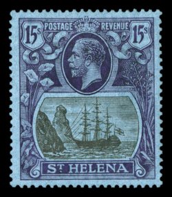 1330 nh 94 image#94, 1922 15/- Violet and black on blue Badge of the Colony, lovely mint single, very well centered, fresh with strong rich colors, o.g., never hinged, extremely fine; a premium example of this scarce key value (S.G. #113; £800 for hinged). (Image) for hinged $925.00
