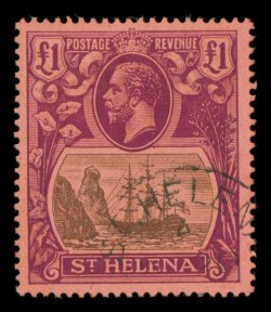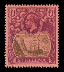 1332 O 99 image#99, 1922 £1 Red violet and black on red Badge of the Colony, an especially fresh used single possessing intense radiant colors, unusually well centered, light and unobtrusive c.d.s. cancel, extremely fine; a pretty example of this scarce high value (S.G. #96; £450). (Image) $550.00