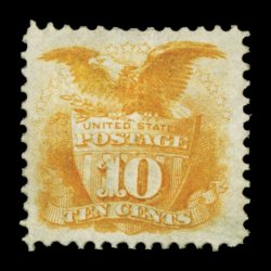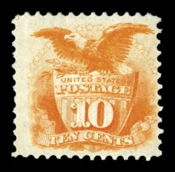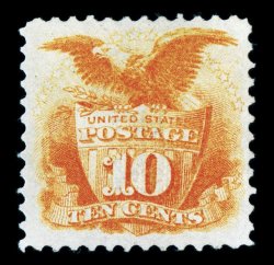 134 ngu 116 image#116, 10c Yellow, select unused example, featuring outstanding centering within large margins, plus its color is especially deep and vibrant, extremely fine; a handsome stamp; 2005 PSE certificate (VF-XF 85; SMQ $960.00). (Image) $1,000.00