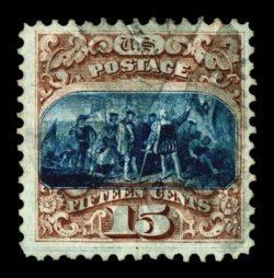 140 O 119 image#119, 15c Brown and blue, Ty. II, exceptionally well centered within large margins, sumptuously rich colors and impressions, lightly cancelled, extremely fine; 1984 PF and 2003 PSE certificates. (Image) $275.00