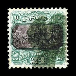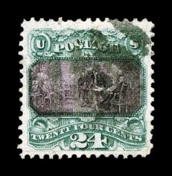 143 O 120 image#120, 24c Green and violet, used, outstanding centering within unusually large margins, deep rich color and strong detailed impressions on especially bright paper, neat and unobtrusive segmented cork cancel, minute internal wrinkle, otherwise extremely fine; clear 1979 PF certificate and a 2006 PSE certificate. (Image) $775.00
