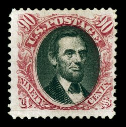 149 ng 122 var. image#122 var., 90c Carmine rose and black, unused, strong fresh colors in the distinctive carmine rose and black shades, attractively centered within large margins, a couple faint corner creases, otherwise very fine; unused examples of this high value are seldom offered; 1984 PF certificate specifically noting the color variety. (Image) $5,250.00