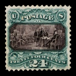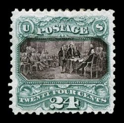158 ng 130 image#130, 24c Green and violet re-issue, unused, strong rich colors, nicely centered, certificate mentions light soiling which is truly minor, very fine appearance; only 2,091 sold; 2006 PF certificate. (Image) $1,200.00