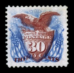 145 ng 121 image#121, 30c Blue and carmine, fresh unused single, strong rich colors and sharp detailed impressions, very fine; an especially handsome stamp; 1987 PF certificate. (Image) $3,750.00