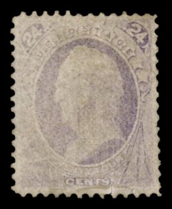 168 O 142 image#142, 24c Purple with grill, an exceptionally handsome appearing used example of this rare Bank Note, extraordinarily well centered within large margins, stronger color than typically encountered, easily seen grill, light NYFM cancel, small closed tear at the bottom, extremely fine appearance; 1998 PF certificate. (Image) $6,500.00