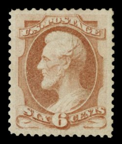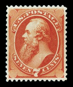 179 og 160 image#160, 7c Vermilion, an extraordinarily choice appearing mint example, flawlessly centered within large margins, although reperforated at left, incredibly intense and vivid color, full clean o.g., lightly hinged, extremely fine appearance; a desirable stamp despite the reperforation; 1999 PF certificate. (Image) 1,500.00