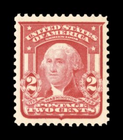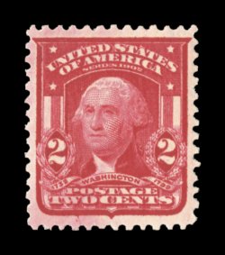 1191 nhu 319 image#319, 2c Carmine, flawless mint single, precisely centered within uncommonly large margins, beautiful vibrant color and a strong impression, pristine o.g., n.h., superb; a wonderful gem example; 2005 PSE certificate (Superb 98; SMQ $1,200.00); only four stamps have been graded Superb 98 (one with Jumbo designation). (Image) $12.50