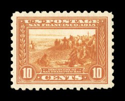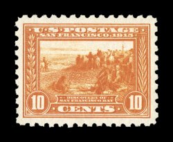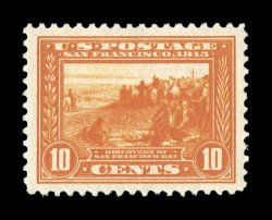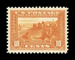 1250 ogu 400A image#400A, 10c Panama-Pacific, orange, beautiful radiant color and an especially strong impression on bright white paper, exceedingly well centered within uncommonly large margins, o.g., lightly hinged, extremely fine; 2006 PSE certificate (XF-Superb 95; SMQ $590.00). (Image) $225.00