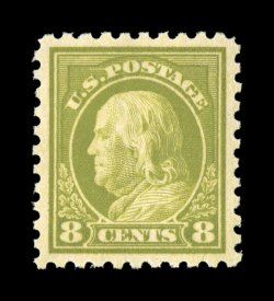 1290 ogu 431 image#431, 8c Pale olive green, gem mint single, perfectly centered within large margins, strong rich color and a well defined impression, o.g., lightly hinged, extremely fine; 2006 PSE certificate (Superb 98; SMQ $280.00). (Image) $37.50