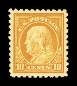 1321 nhu 472 image#472, 10c Orange yellow, extraordinarily well centered within large balanced margins, absolutely radiant color, pristine o.g., n.h., extremely fine; a gorgeous gem; 2006 PSE certificate (XF-Superb 95; SMQ $2,100.00). (Image) $250.00