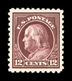 1324 ogu 474 image#474, 12c Claret brown, beautifully centered within large balanced margins, lovely rich color and a strong impression on brilliantly fresh paper, o.g., lightly hinged, extremely fine gem; 2005 PSE certificate (XF-Superb 95; SMQ $190.00). (Image) $60.00
