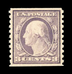 1333 nhu 493 image#493, 3c Violet coil, Ty. I, perf. 10 vert., choice centering, bright fresh color, o.g., n.h., extremely fine; 2004 PSE certificate (XF-Superb 95; SMQ $120.00). (Image) $30.00