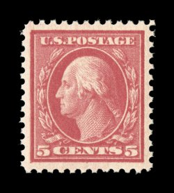 1342 nhu 505 image#505, 5c Rose error, an especially desirable mint single of this scarce and popular error, being incredibly well centered within uncharacteristically large margins, wonderfully bright color and a strong impression, flawless o.g., n.h., an extremely fine gem; rarely encountered in such choice quality; 2006 PSE certificate (XF-Superb 95; SMQ $3,950.00). (Image) $700.00