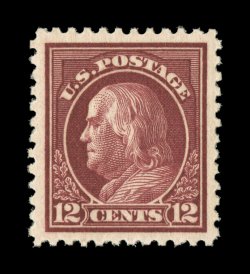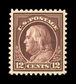 1351 nhu 512a image#512a, 12c Brown carmine, excellent centering within extravagantly large margins, gorgeous prooflike color and impression, unblemished o.g., n.h., extremely fine; 2006 PSE certificate (XF 90 Jumbo; SMQ $75.00 for 90 and $240.00 for 95). (Image) $22.50
