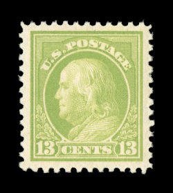1352 nhu 513 image#513, 13c Apple green, outstanding centering within considerably larger margins than normally found, exceptionally bright and fresh, o.g., n.h., an extremely fine gem; 2006 PSE certificate (XF-Superb 95 Jumbo; SMQ $265.00 for 95 and $770.00 for 98). (Image) $25.00