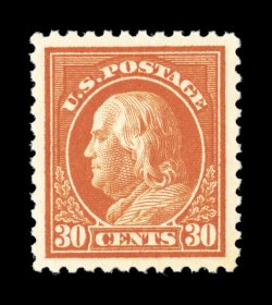 1355 nhu 516 image#516, 30c Orange red, gorgeous color that is especially deep and vibrant, sharp detailed impression on bright white paper, extraordinarily well centered within uncommonly large margins, flawless o.g., n.h., an extremely fine gem; 2001 PF certificate and a 2004 PSE certificate (XF-Superb 95; SMQ $740.00). (Image) $85.00