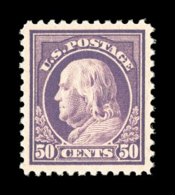 1357 nhu 517 image#517, 50c Red violet, especially well centered within lavishly large margins, bright color and a clean impression on fresh paper, unblemished o.g., n.h., extremely fine; 2006 PSE certificate (XF-Superb 95 Jumbo; SMQ $1,050.00 for 95 and $2,600.00 for 98). (Image) $150.00