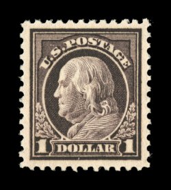 1359 nhu 518 image#518, $1.00 Violet brown, a highly desirable mint single that is exceedingly well centered within large margins, deep luxuriant color and a stunning prooflike impression on crisp paper, unblemished o.g., n.h., extremely fine; an exceptionally choice example; 2006 PSE certificate (XF-Superb 95; SMQ $920.00). (Image) $120.00
