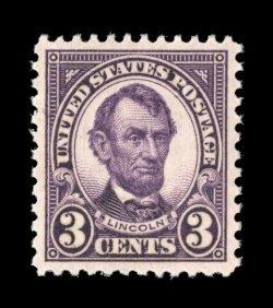 1444 nhu 635 image#635, 3c Violet, wonderfully well centered within especially large margins, deep luxuriant color and a razor-sharp impression, o.g., n.h., extremely fine; 2006 PSE certificate (XF-Superb 95 Jumbo; SMQ $75.00 for 95 and $255.00 for 98). (Image) $0.60