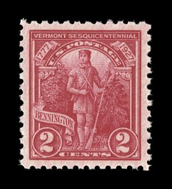 1453 nhu 643 image#643, 2c Vermont Sesquicentennial, incredibly well centered within particularly large margins, radiant rich color and a vivid impression, o.g., n.h., an extremely fine gem; 2006 PSE certificate (Superb 98; SMQ $210.00). (Image) $2.00