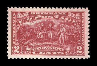 1454 nhu 644 image#644, 2c Burgoyne Campaign, a spectacular mint single, possessing immense margins all around and being perfectly centered within them, dazzling bright color and an intense impression, pristine o.g., n.h., a superb gem; 2006 PSE certificate (Superb 98 Jumbo; SMQ $265.00 for 98). (Image) $5.50