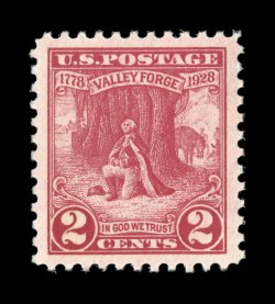 1456 nhu 645 image#645, 2c Valley Forge, extraordinarily well centered within extravagantly large margins, brilliant rich color, o.g., n.h., extremely fine; 2006 PSE certificate (XF-Superb 95 Jumbo; SMQ $50.00 for 95 and $180.00 for 98). (Image) $1.50