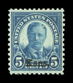 1471 nhu 663 image#663, 5c "Kans." ovpt., exceptionally well centered and margined, especially deep color and impression, o.g., n.h., extremely fine; 2006 PSE certificate (XF 90; SMQ $80.00). (Image) $24.00