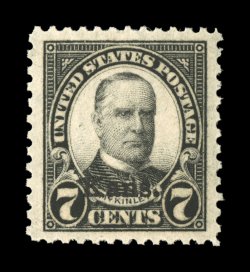 1473 nhu 665 image#665, 7c "Kans." ovpt., a simply mind-boggling mint example, possessing the most gigantic margins we have ever encountered on any "Kans.-Nebr." overprint, and being marvelously well centered within these impressive borders, intense color, o.g., n.h., extremely fine; a superb gem whose equal we sincerely doubt exists; 1990 PF certificate and a 2006 PSE certificate (XF-Superb 95 Jumbo; SMQ $485.00 as 95 and $1,300.00 as 98); ex-Killien. (Image) $55.00