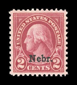 1479 nhu 671 image#671, 2c "Nebr." ovpt., a fabulous quality mint single, featuring impeccable centering amid lavishly large margins, plus its color is especially rich and vibrant, while its impression is well incised, o.g., n.h., a superb gem; 2006 PSE certificate (Superb 98 Jumbo; SMQ $345.00 for 98); one of only two stamps to be awarded this impressive grade, the highest achieved for this stamp. (Image) $5.75