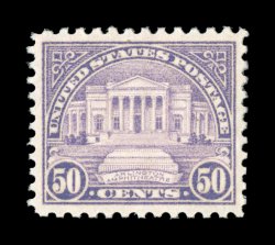 1504 nhu 701 image#701, 50c Lilac, gem quality mint single, absolutely perfect centering amid exceptionally large margins, bright fresh color on pristine paper, unblemished o.g., n.h., extremely fine; a particularly choice example; 2006 PSE certificate (Superb 98; SMQ $810.00). (Image) $52.50