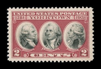 1506 nhu 703 image#703, 2c Yorktown, perfectly centered amid the most enormous margins imaginable, brilliantly rich color and a sharp impression on crisp white paper, o.g., n.h., extremely fine gem; while not a scarce stamp, it is quite difficult to find this well centered and margined; 2005 PSE certificate (XF-Superb 95 Jumbo; not listed in SMQ) (Image) $0.50