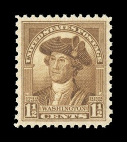1509 nhu 706 image#706, 1 1/2c Washington Bicentennial, absolutely flawless centering amid large margins, rich bright color on crisp paper, o.g., n.h., an extremely fine gem; 2004 PSE certificate (Superb 98; SMQ $210.00). (Image) $0.55
