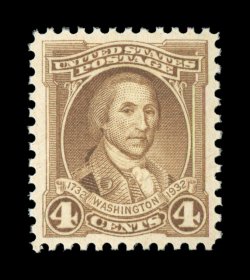 1510 nhu 709 image#709, 4c Washington Bicentennial, precisely centered within uncharacteristically large margins, strong rich color on fresh paper, unblemished o.g., n.h., extremely fine gem; 2004 PSE certificate (Superb 98; SMQ $225.00). (Image) $0.35