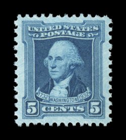 1511 nhu 710 image#710, 5c Washington Bicentennial, extraordinarily well centered within particularly large margins, rich luxuriant color and a well defined impression, pristine o.g., n.h., extremely fine; an impressive gem; 2005 PSE certificate (Superb 98 Jumbo; SMQ $425.00); the highest grade given to this stamp, one of merely two examples to receive this desirable grade. (Image) $2.25