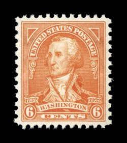1512 nhu 711 image#711, 6c Washington Bicentennial, perfectly symmetrical margins all around, gorgeous bright color and a clean impression on immaculate white paper, flawless o.g., n.h., superb gem; 2005 PSE certificate (Superb 98; SMQ $225.00). (Image) $4.50