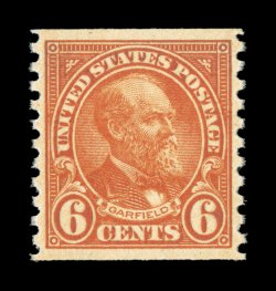 1516 nhu 723 image#723, 6c Deep orange coil, gem mint single, intense vibrant color and a particularly strong impression, incredibly well centered, o.g., n.h., extremely fine; 2006 PSE certificate (Superb 98; not listed in SMQ); the highest grade awarded to any example of this stamp. (Image) $15.00
