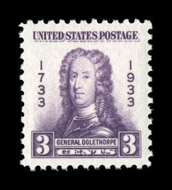 1519 nhu 726 image#726, 3c Georgia Bicentennial, flawless centering within enormously large margins, exceedingly bright and fresh, brilliant o.g., n.h., superb; a perfect gem; 2004 PSE certificate (Superb 98 Jumbo; unlisted in SMQ); the only #726 to grade Superb 98 Jumbo, the highest recorded to date. (Image) $0.50
