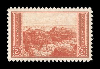 1523 nhu 741 image#741, 2c Grand Canyon, fabulously well centered within extravagantly large and perfectly symmetrical margins, lovely bright color, pristine o.g., n.h., superb; a flawless gem; 2005 PSE certificate (Superb 98 Jumbo; SMQ $390.00). (Image) $0.25