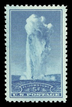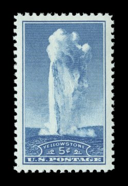 1527 nhu 744 image#744, 5c Yellowstone, another gem mint example of this stamp, with rich luxuriant color on brilliantly white paper, impeccably centered amid enormously large margins, pristine o.g., n.h., superb; a spectacular stamp; 2006 PSE certificate (Superb 98 Jumbo; SMQ $350.00); only the above offered stamp grades higher. (Image) $1.00