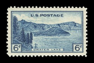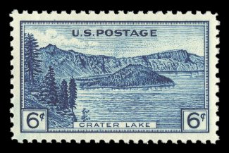 1529 nhu 745 image#745, 6c Crater Lake, outstanding centering within remarkably large and balanced margins, deep rich color, o.g., n.h., an extremely fine gem; 2006 PSE certificate (Superb 98 Jumbo; SMQ $390.00). (Image) $1.60