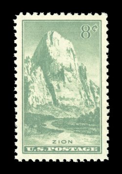 1531 nhu 747 image#747, 8c Zion, absolutely perfect centering amid extravagantly large margins, warm rich color, o.g., n.h., a superb gem; 2006 PSE certificate (Gem 100; SMQ $560.00); the highest grade given to this stamp, being one of four to receive the coveted Gem 100 grade. (Image) $2.40