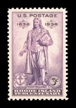 1535 nhu 777 image#777, 3c Rhode Island Tercentenary, exceedingly large and perfectly balanced margins all around, rich color, o.g., n.h., an extremely fine gem; 2006 PSE certificate (Superb 98; not listed in SMQ); the sole example to receive this grade, the highest to date. (Image) $0.35