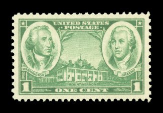 1536 nhu 785 image#785, 1c Army, flawlessly centered within exceptionally large margins, deep rich color and a strong impression, o.g., n.h., superb gem; 2006 PSE certificate (Gem 100; SMQ $275.00); one of only two copies of this stamp to receive this ultimate grade. (Image) $0.20