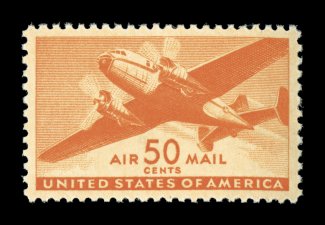 1580 nhu C31 image#C31, 50c Orange, unusually large and perfectly balanced margins all around, deep intense color and impression, o.g., n.h., extremely fine gem; 2006 PSE certificate (Superb 98; SMQ $200.00). (Image) $11.00