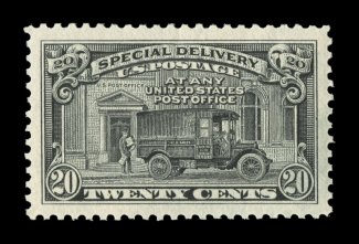1602 nhu E14 image#E14, 20c Black, superb mint example, flawlessly centered amid extraordinarily large margins, fresh color and a clean impression, pristine o.g., n.h., an extremely fine gem; 2005 PSE certificate (Superb 98 Jumbo; SMQ $110.00 for 98); the highest grade in the PSE population report and the only example to receive this coveted grade. (Image) $4.25