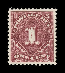 1607 nhu J31 image#J31, 1c Deep claret, a marvelously choice mint single, possessing essentially perfect centering amid large balanced margins, deep luxuriant color and a razor-sharp impression, o.g., n.h., extremely fine; actually a very elusive stamp in this gem quality; 2004 PSE certificate (XF-Superb 95; SMQ $800.00) (Image) $300.00